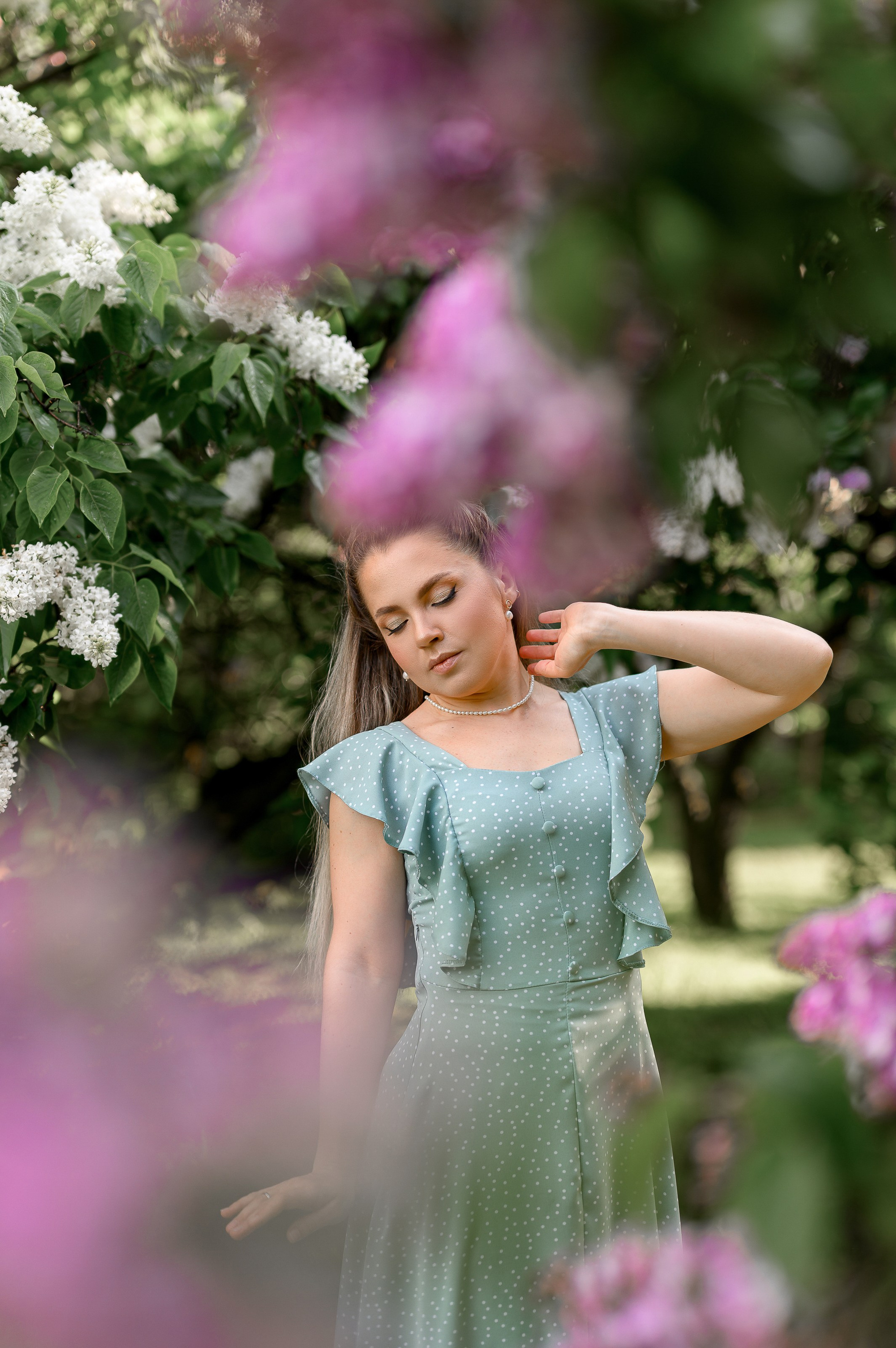 Анастасия. Фотосессия в цветении в Сиреневом саду в Москве